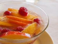 本日の朝食の一皿目は、ネクタリン(桃の一種)とラズベリーなどを入れたグラスに、ペリエを注いだもの。イタリアかフランスかでは(聞き逃した)、ペリエの代わりにシャンパンにする場合もあるらしいけど、そこは、朝食なので。炭酸のシュワシュワ感とフルーツの甘さが混在して、美味。(帰国してから、マネしてやってみましたけど、ソコソコ良い感じになりましたよ♪)