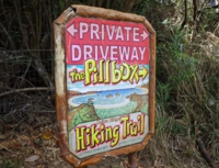 実は、ココからが本格的なトレイルです。山の稜線に向かって、ずっと道が続いています。道の先には、四角いコンクリートの箱が。あれが「PILLBOX」と呼ばれる、防御陣地。トーチカってロシア語なんですね。英語だとコレになる訳。