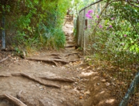 茶色い土と木の根っこしかないので、雨が降ったら滝になっちゃうんだろうなあ(と想像)。サンダルで登る人もいますが、お奨めはできません。少なくとも、ソールがちゃんとした靴でないと、滑ります。