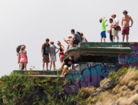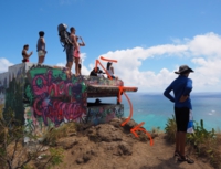 ピルボックスの上に、日系のロコと思われる(L子)と日本から来た様な子(J子)がいました。L子はタトゥーを結構入れてます。という事でロコと判断w。カミさんも「ダンボな耳」で、彼らの会話聞いていた様子なんですが、毒舌を吐いてました(笑)。