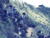 結構しんどい登山道。誰が「easy」ていうんだろう(て言うか、ロコの連中は皆そう言うらしい。正直ミエ張ってるだけだろ?)。しかしながら、子供を背負って登ってるアホな欧米人も居たりして、クレージーとしか言い様のない方もいるので、まあ凄いよねと思う次第。登っただけ、確実に風景は素敵になる訳ですから、撮影するには絶好ですけど、こりゃお天気に登るに限ります。