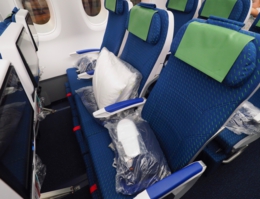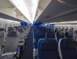 ゲートから機首側に。ビジネス・プレミアムエコノミーに上がる階段を横目に、奥へ奥へ。ANA COUCHiiにした座席は、最後尾になります。番号でいくと74HとJ。74列のKも含めた3列を2人で利用する事になります( ´ ▽ ` )ノ