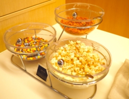 ANAのゲートからちょっと離れてしまいますが「成田トラベルラウンジ」へ。一部カード会社が発給しているプライオリティパスでは使えません。1人=1200円を払いますが、静かで綺麗です。一番奥の静かなエリアを確保。ドリンクは無料。ちょっと高めですが軽食も用意されていますので、小さなサンドイッチ(ていうかバターロールにハムを挟んだやつw)を購入。無料コーナーからはポップコーン、M&M’sと柿の種もゲット。タキシング中の飛行機を見ながら、しばらくゆったりと過ごします。