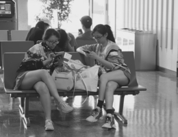 オンラインチェックインは自動的に完了しているので、専用カウンターに行けば良いハズなのですが、気がつかず。バス停から入った総合受付の後方にANAのカウンターがあったので、そのままそちらへ。人影もまばらな時間帯もあり、近くの係り員に告げるとそのまま受付カウンターへ。メールで来ていたバーコードを提示する様に言われます。iCloudメールをANAの登録に使っていたので、メールを開くとバーコードが表示されず、ちょっと焦りました(少し間を置いて表示されたのでOKでしたが、何が原因?)。 iPhoneの「ANA」アプリから今回のフライトチケ情報を「Wallet」アプリに渡しておくことも可能(帰路は準備していたのですが、ハワイでは使わずorz)なので、もっと簡単だったハズだと後で分かりました。さて、パスポートを渡し、バーコードを読み取って貰えば、紙のチケを発券されます。うーん、時代だなあ。近い将来、パスポートも不要な時代になるかもね。荷物は2人で1個を預けて、チェックインは完了。ANAカウンターを後にします。