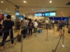 まずは、セキュリティ・ゲートを通過し、出国手続きを。話には聞いていましたが「顔認証ゲート」なっています。若干時間は掛かりますが、パスポートを下側の読み取り部分に置いて、正面の鏡(ハーフミラー)で写真を撮るだけ。緑のランプが点いたら完了です。パスポート切替後初ですし、ハンコも押して貰いたいので、その後係り員にスタンプを押してもらいます。これにて出国完了。