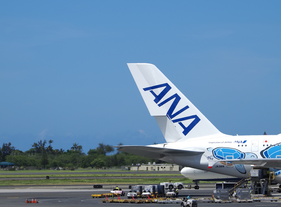 さて、帰国便は、水色のホヌ・ペイント。 これにて「Voyage to Lanikai」は、おしまいです。