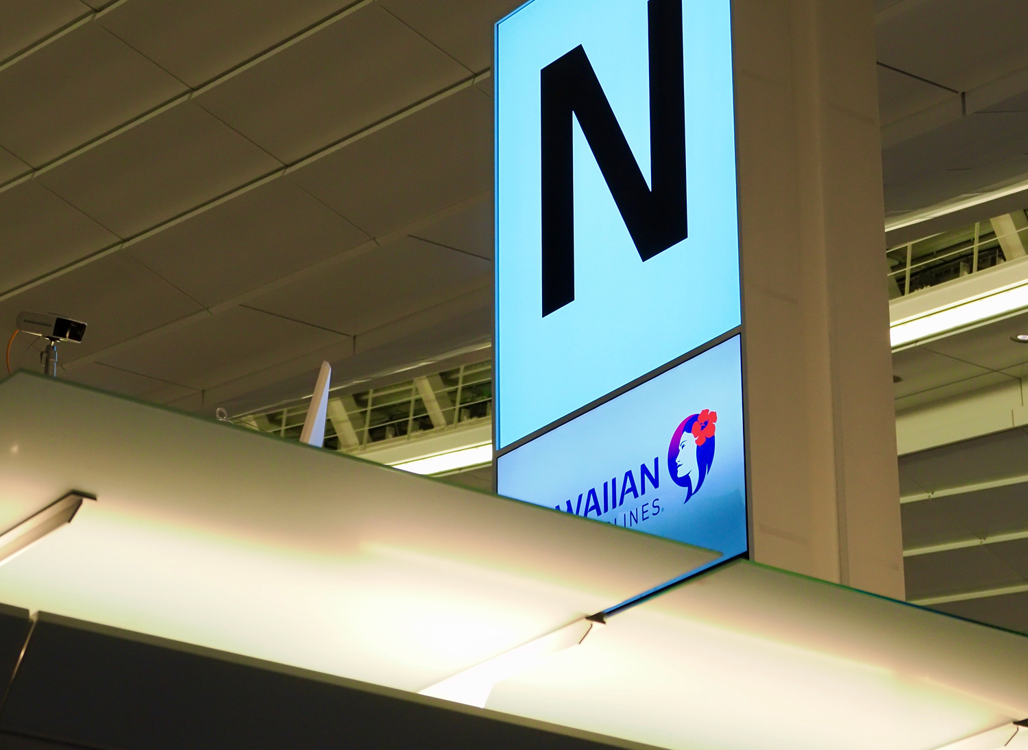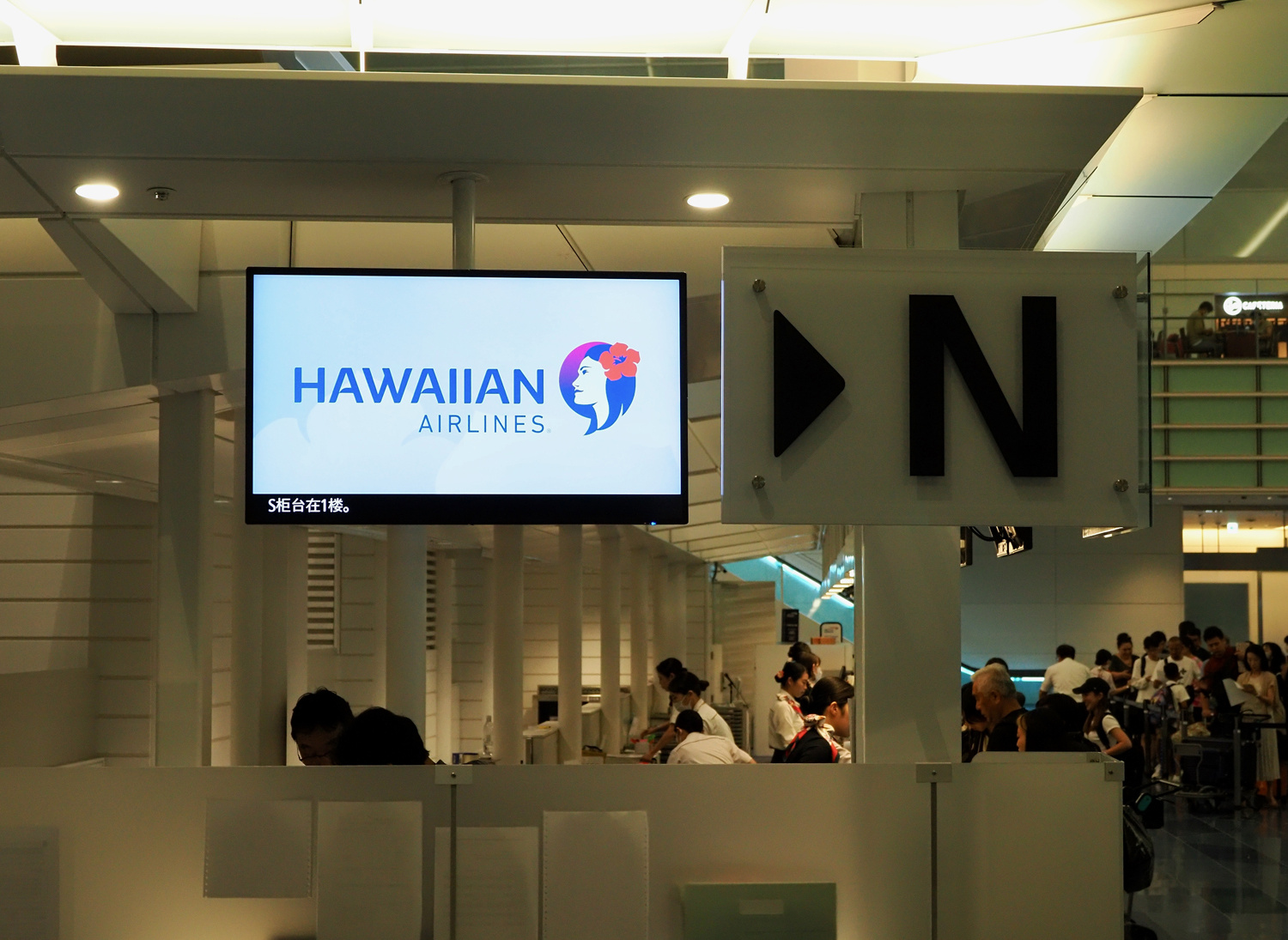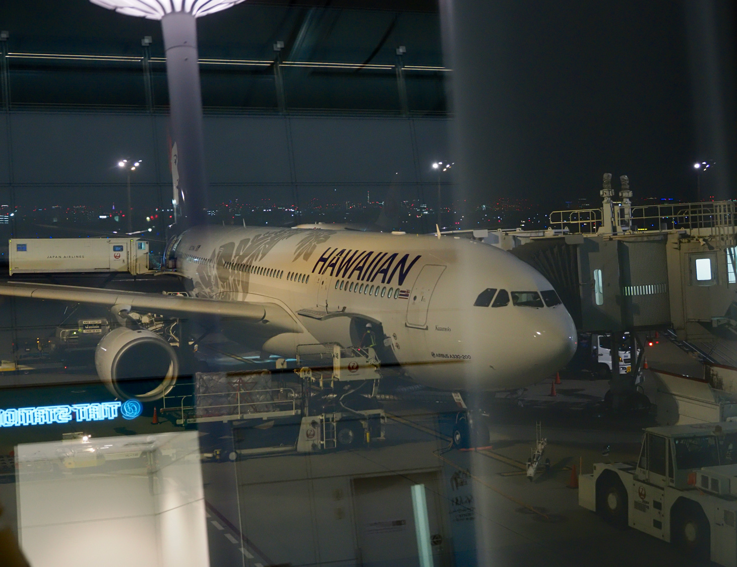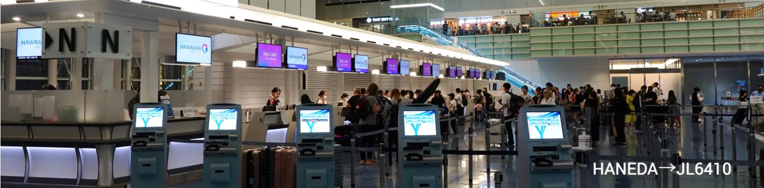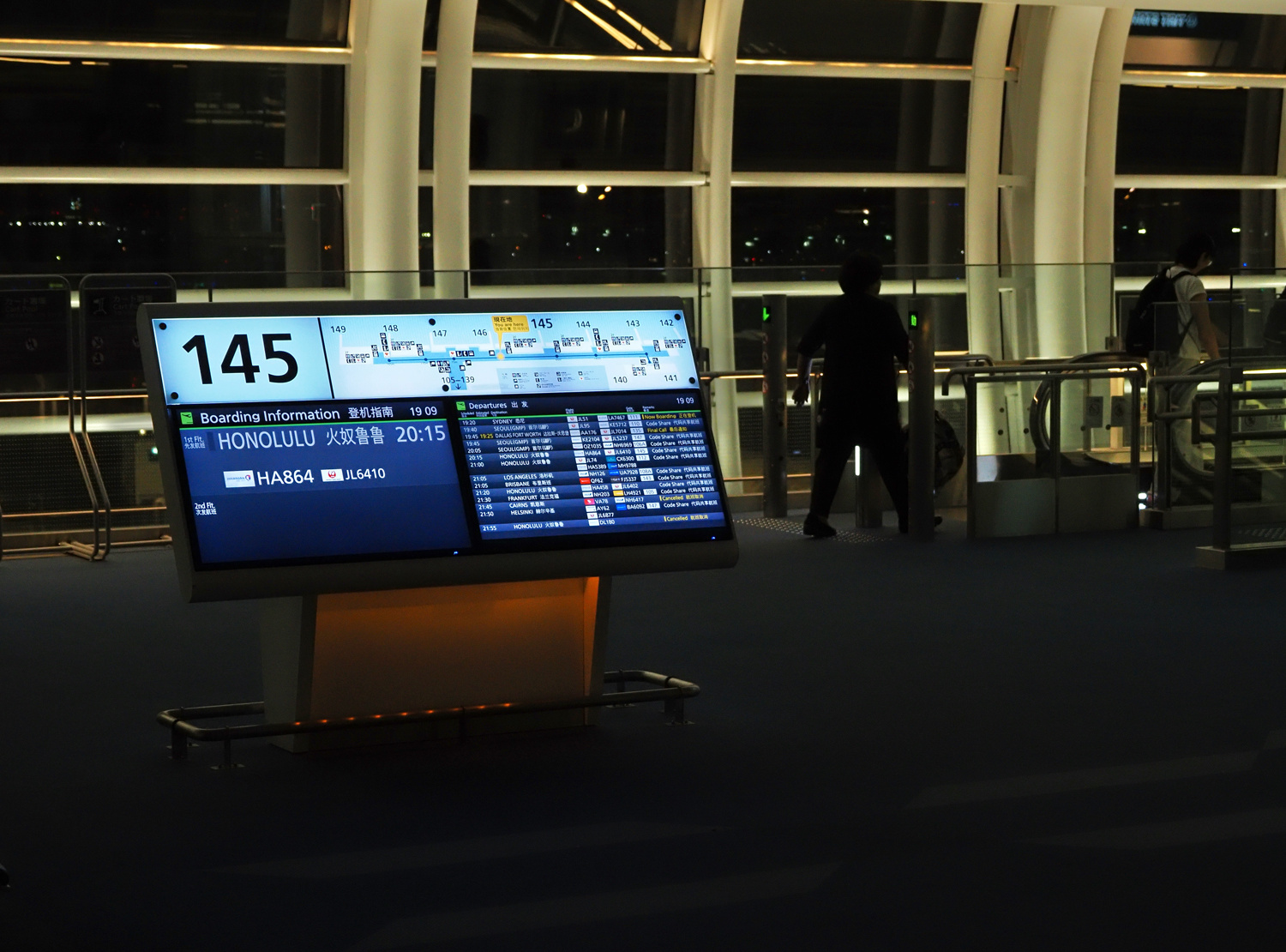 ターミナル到着手前の道路がメッチャ混んでいたので18時過ぎに羽田に到着。第3ターミナルなんて、写友どこさんとお散歩カメラで来た以来です。さて、HAWAIIANのカウンターを目指します。