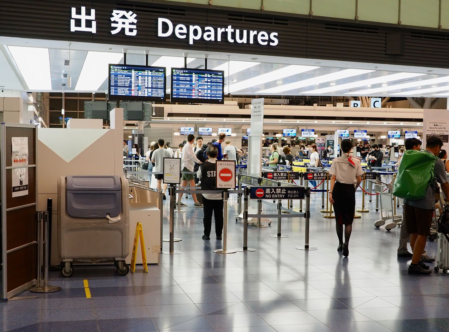 前回同様「顔認証ゲート」です。パスポートを読み取り部分に置き、正面の鏡(ハーフミラー)で写真を撮るだけ。緑のランプが点いたら完了です。ハンコも貰いたいので、正面カウンターに行き、係り員にスタンプを押してもらいます。これにて出国完了。