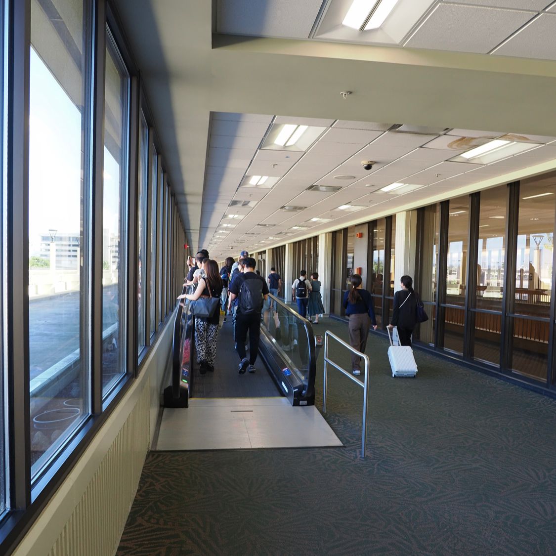 到着予定(9:10)より少し早くオアフ島にランディング。慣れたはずの入国審査ですが、今回ばかりはちょっとドキドキします。荷物をまとめ機内から出たら、連絡通路をズンズン歩き、先行組を巻くって参ります。