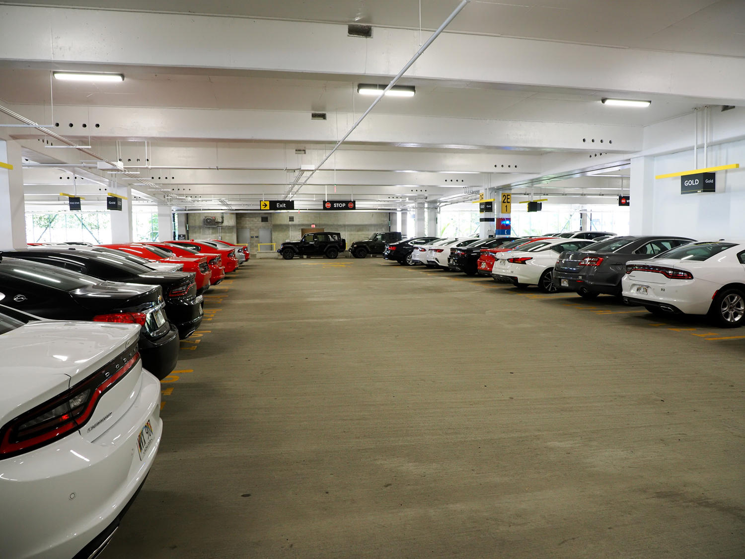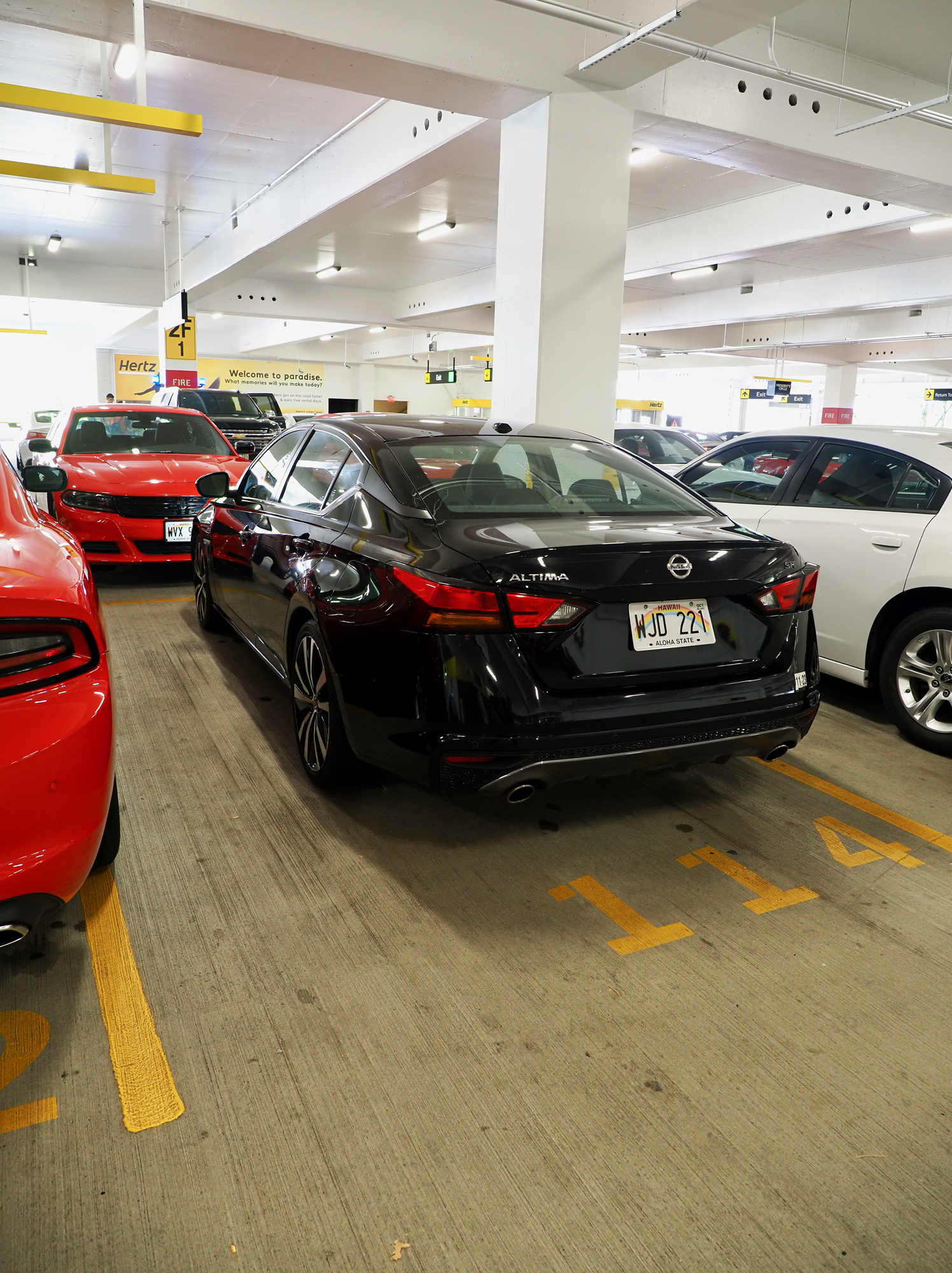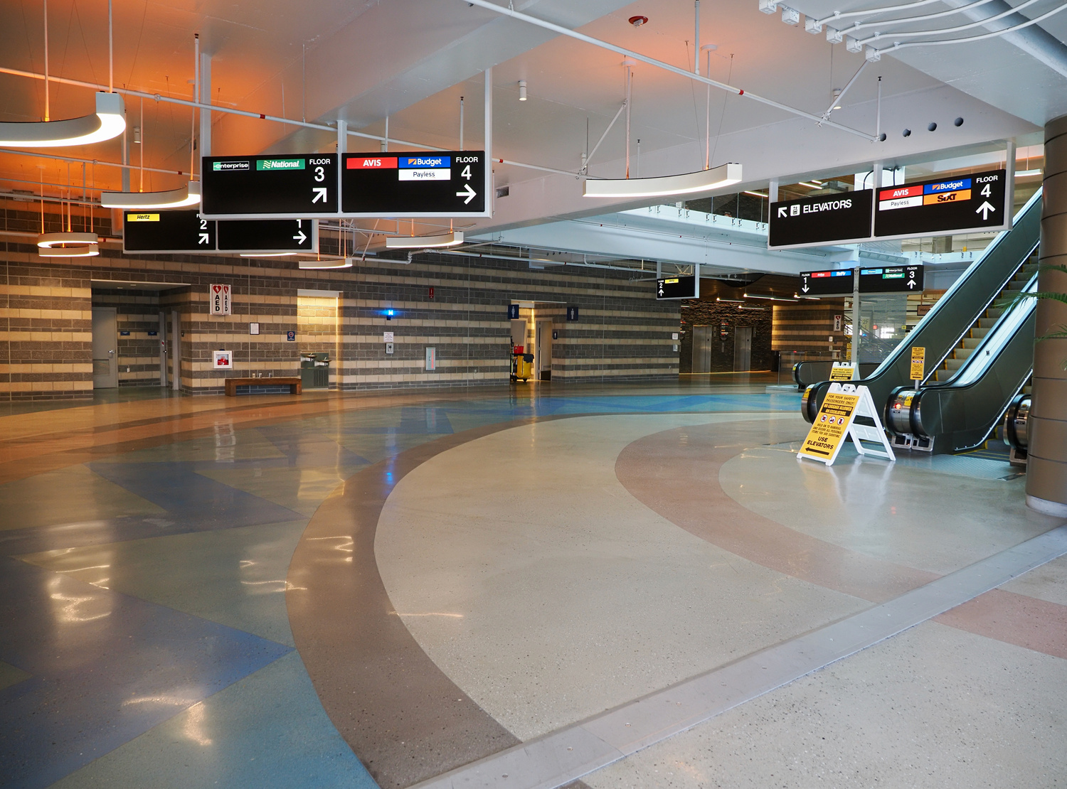 5分ほどスーツケースを引きずった後、歩道橋で反対側に渡ると「CONRAC:Consolidated Rental Car Facility」のビル。エスカレータで2階に上がると、レンタカーオフィスが並んでいます。目の前にHertzがあるんですが、実はここじゃないのは予習済み。そのまま前を通過して、左手奥に進みます。