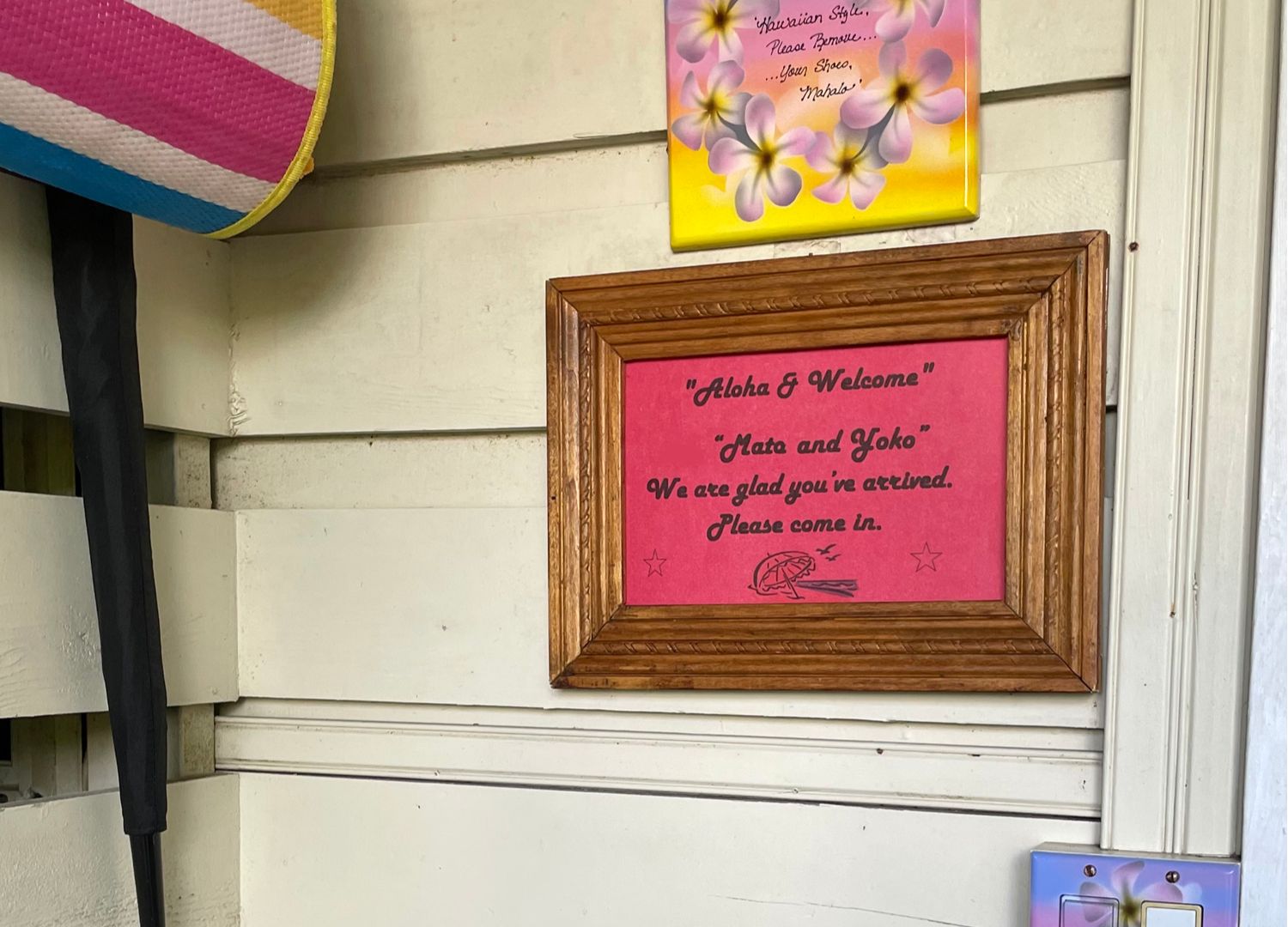宿の入り口には、我々の名前に入ったプレートが。いよいよお部屋へ。