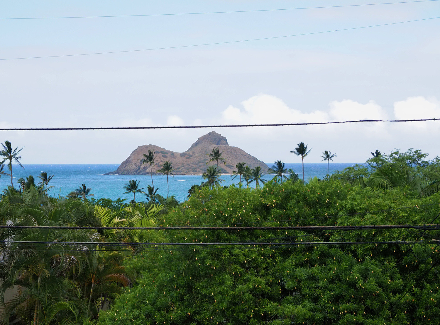 4年前にダメだったパリ・ハイウエイが通れそう。こちらをチョイスして最短距離で向かうことに。途中スコールが降るのは雨が多いパリ地区の特徴。トンネルを抜けるとカイルアの青い海が見えて来ます。カイルアの街に入ってきました。本来ならタウンの入り口を右折してビーチ方面へ・・・なのですが、実はカイルアビーチへ向かう道路が閉鎖中です。
