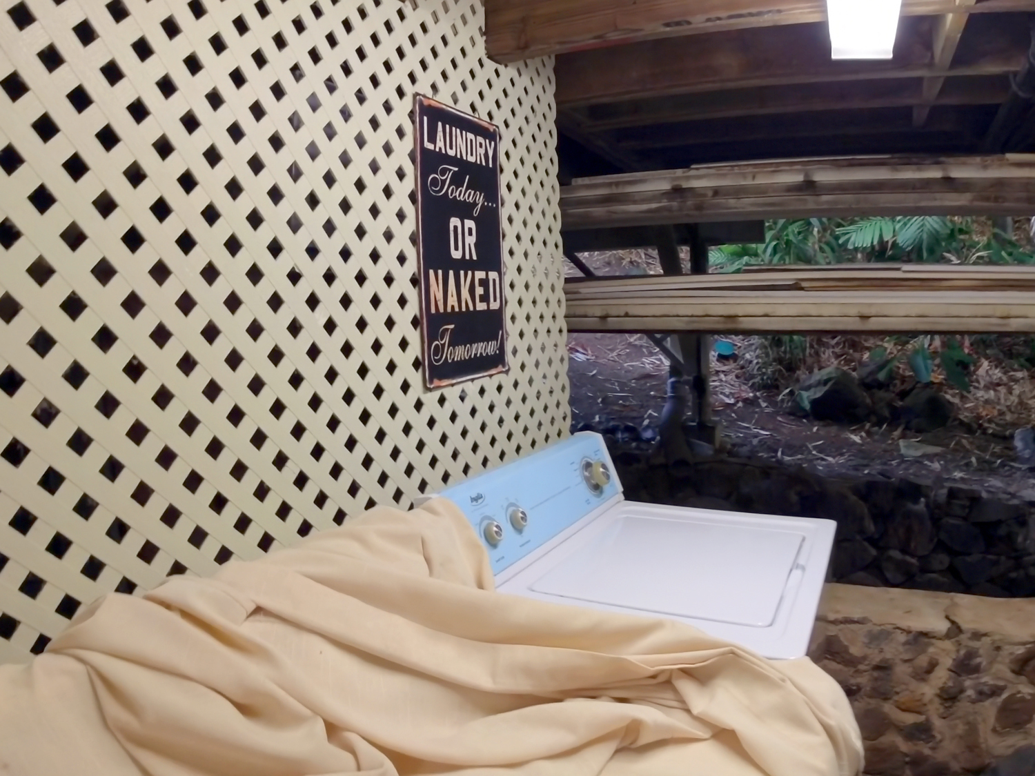 「それと古い洗濯機だから、優しく扱ってね。スイッチが壊れたら◎◎ドルを請求することになるわ」って怖いことをサラリと言います。え?何ドル?